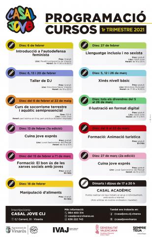 La Concejalía de Juventut, encabezada por Berta Domènech, ha dado a conocer la nueva programación del Casal Jove para el primer trimestre del 2021. Una vez más se ha apostado por una oferta variada, que suponga un entretenimiento atractivo para los adolescentes, al mismo tiempo que también mejoran su formación y se educan en valores.